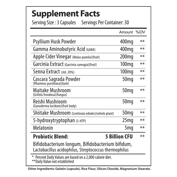 8 Natural Ingredients: Valerian, Berberine, 5-HTP, Spirulina… among others.